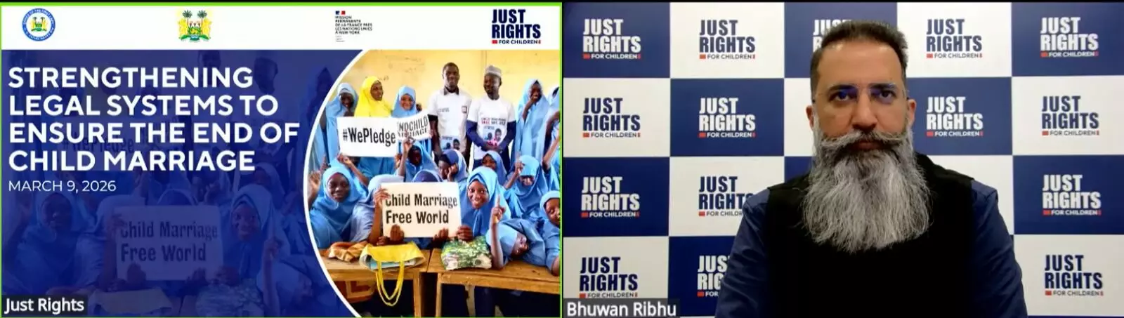 Bhuwan Ribhu, who is the first Indian lawyer to be conferred with the ‘Medal of Honour’ by the World Jurist Association (WJA) at the World Law Congress 2025, was speaking online at an event convened by Just Rights for Children in partnership with the office of Sierra Leone’s First Lady and President of the Organisation of African First Ladies for Development (OAFLAD), H.E. Dr. Fatima Maada Bio. Other speakers at the event included HE Mr. Pio Smith, Assistant Secretary-General and Deputy Executive, Director - Programme, UNFPA; HE Ambassador Isabelle Rome, Ambassador At Large for Human Rights, Government of France; HE Ambassador Thomas Zahneisen, Deputy Permanent Representative of Germany; Dr. Angela Martins, (on behalf of H.E. Ambassador Amma Twum-Amoah, Commissioner for Health, Humanitarian Affairs and Social Development, The African Union); Ligia Jeannette Pérez Peña, Executive President of the National Council for Children and Adolescents (CONANI), Government of Dominican Republic; Ana Rold, Founder and CEO of The Diplomatic Courier; Jaha Dukureh, Regional UN Women Ambassador and Founder, Regenerative Hubs; Divya Srinivasan, Director of Ending Gender-Based Violence, Equality Now; and Rachna Tyagi, General Counsel, Just Rights for Children.
