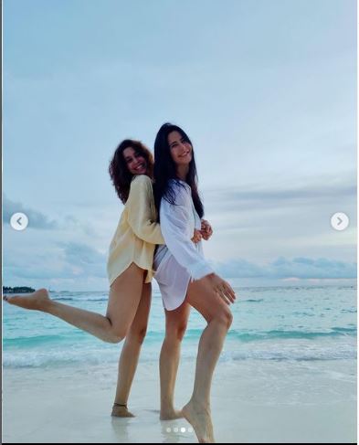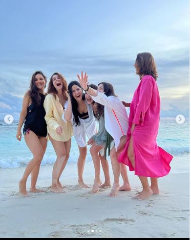 In the second image, the 'Sooryavanshi' actor is with her girl gang on the beachside.