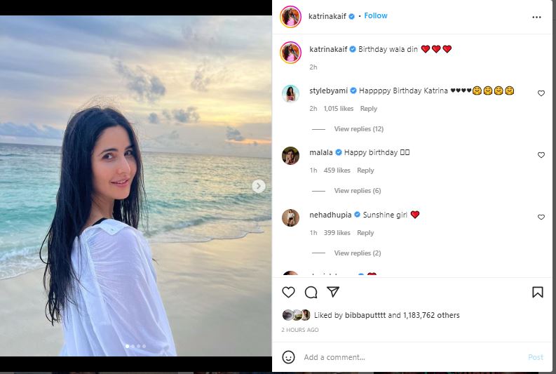 As the 'Raajneeti' actor rings in her 39th Birthday today, she shared a series of pictures from her birthday celebration in the Maldives.