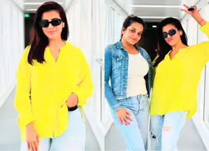 In the snaps, we can see Akshara oozing summer fashion goals in a bright yellow mandarin collar shirt, and paired it with ripped jeans. She kept her hair open and accessorised with big sunglasses. The airport look was rounded off with clear heels.