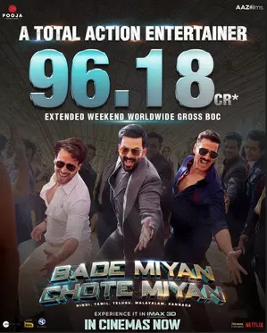 Presented by Vashu Bhagnani and Pooja Entertainment in association with AAZ films, ‘Bade Miyan Chote Miyan’ is written and directed by Ali Abbas Zafar. It is produced by Vashu Bhagnani, Deepshikha Deshmukh, Jackky Bhagnani, Himanshu Kishan Mehra and Ali Abbas Zafar. The film is currently playing in cinemas.