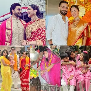 Beyond their individual achievements, the star cricketer and his actress wife are renowned for their deep-rooted spiritual convictions. During Ganesh Chaturthi's festivities last year, Virat was dressed in a white kurta-pyjama, while Anushka elegantly draped herself in a saree of a golden hue. A perfect ethnic outfit style inspiration to pin for a temple visit.