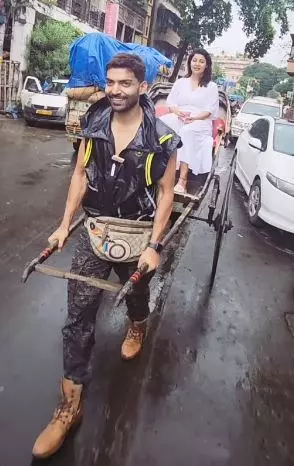 Gurmeet took to Instagram and shared a video of himself pulling a hand-pulled rickshaw with his wife sitting on it.