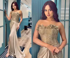 Jannat took to Instagram, where she shared a string of pictures flaunting her new hair colour and dressed in a floor-sweeping dress by the label Kalki Fashion.