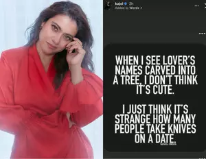 The actress, who was last seen in 'Lust Stories 2', took to Instagram stories to share a quote which stated: “When I see lovers’s names carved into a tree, I don’t think it’s cute. I just think it’s strange how many people take knives on a date."