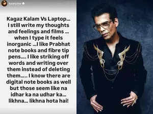 Mumbai, March 8 Filmmaker Karan Johar revealed he chooses ‘kaagaz kalam’ over ‘laptops’ as he still pens down his “thoughts and films”.