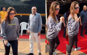 For the outing, the 'Udta Punjab' actress opted for a casual grey sweatshirt, black joggers, and white sneakers. She sported a no-makeup look, complemented by wet, open hair and sleek black sunglasses.