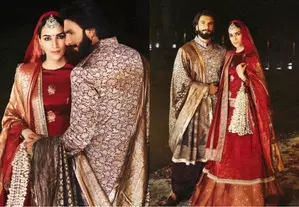 On the other hand, Ranveer donned a brown and golden sherwani.