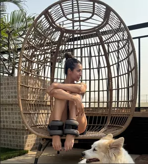 She can be seen sitting on a swing on the balcony with her furry friend, Casper, sitting next to her. Malaika Arora was seen posing in a comfy athleisure while wearing ankle weights.
