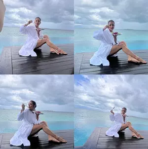 Mumbai, Aug 7 Actress and model Malaika Arora, who was recently in the Maldives for a professional commitment, has dropped her pictures from the tropical paradise, enjoying fruits by the seaside.