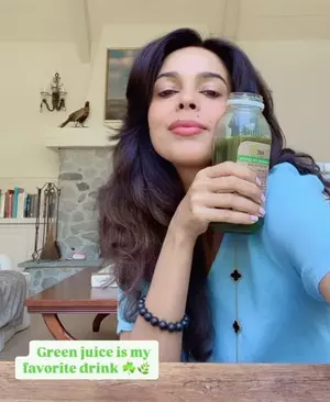 Mallika took to her Instagram stories, where she shared a video of herself enjoying a healthy green juice, which is mostly made up of green leafy vegetables, cucumbers, green apples, and lime.