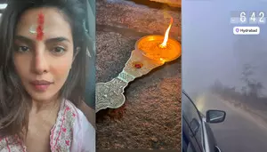 Priyanka seeks divine blessings early morning in Hyderabad temple