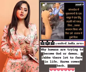 Mumbai, Aug 18 Actress Rashami Desai has raised her voice against atrocities on a Hindu girl in Bangladesh, after she was reportedly attacked, since the resignation of former Prime Minister of Bangladesh Sheikh Hasina on August 5.