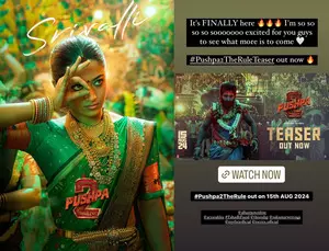 Mumbai, April 8 After the makers of 'Pushpa' franchise dropped the teaser of the second installment of the film on star Allu Arjun's 42nd birthday, actress Rashmika Mandanna, who plays Srivalli, wished “Pushparaj”.