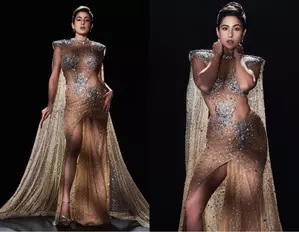 Taking to Instagram, Sara, who boasts 45.8 million followers, shared a stunning series of photos showcasing her in a sleeveless golden gown embellished with silver accents, featuring an open waistline and a daring thigh-high slit. The gown was complemented by a matching cape that added a dramatic flair to her look.