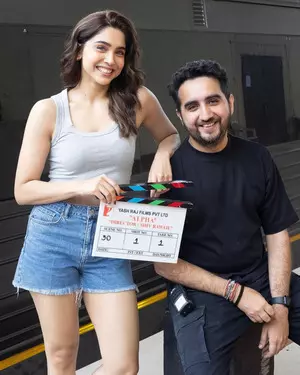 Sharvari took to Instagram and shared a picture, where she is seen posing with the film’s clapboard and the director, Shiv Rawail.