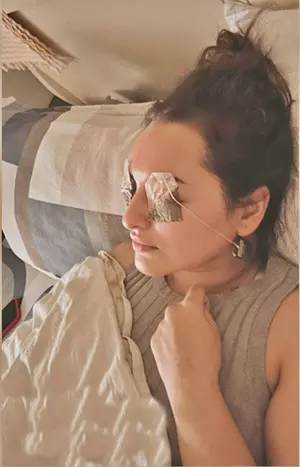 Sonakshi Sinha enjoys some shut eye with hubby Zaheer Iqbal's tea bags