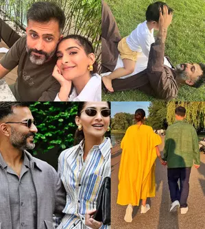 The photos include Sonam and Anand walking hand-in-hand on the streets of a foreign location, while the latter is enjoying quality time with their son Vayu, and several candid moments of happiness.
