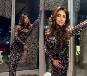 Urmila took to Instagram, where she shared a string of pictures in a glamorous avatar. The actress is seen wearing a black rhinestone embellished body-fitted dress. The actress has her hair blow dried and completed her look with minimum make-up.