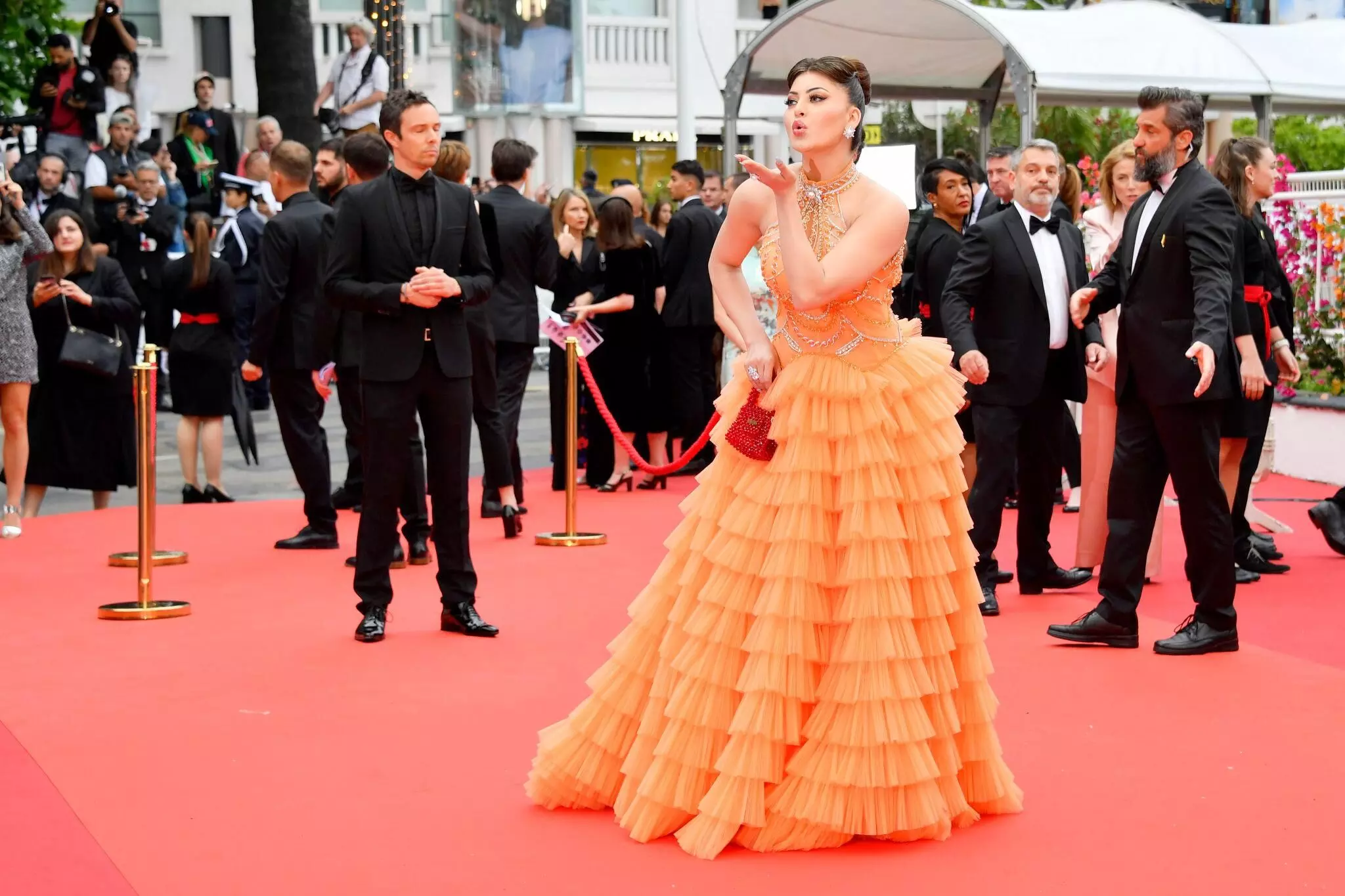 The uniquely designed clutch, dramatic yet glamorous, perfectly complemented Urvashi’s red carpet ensemble. Within hours, her look went viral across social media, with fashion enthusiasts dissecting every detail. The accessory wasn’t just a styling element; it became the highlight of her Cannes moment, reinforcing her reputation for daring international red-carpet choices.