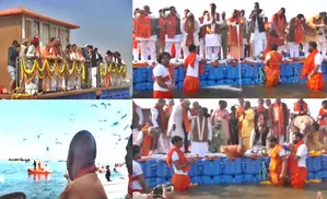 CM Yogi, his ministers take holy dip at Triveni Sangam