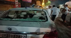 The miscreants vandalized several vehicles parked outside and fled after creating a ruckus, triggering a protest by party workers.