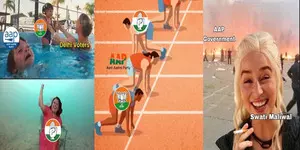 A viral video shows two young girls dancing in a manner that has been compared to Swati Maliwal and Bansuri Swaraj celebrating Kejriwal's fall, while yet another meme features Game of Thrones' Khalisi -- likened to Swati Maliwal -- laughing as the AAP government appears to burn behind her.