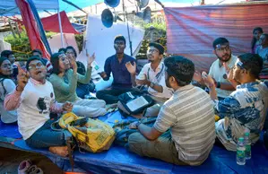 When the protesting doctors questioned the employees for removing items like tarpaulins, cam-cots and pedestal fans, they replied that they had been instructed by their authorities to do so since the equipment needed to be supplied at a different function.