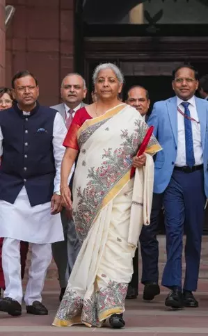 Ahead of presenting the Union Budget at 11 am on Saturday, she followed the customary ritual of posing outside her North Block office with the 'bahi-khata,' flanked by her team, before heading to meet the President.