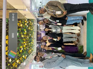 A stall set up by ISRO at the venue displayed advanced space technologies, including camera and imaging sensors, temperature and pressure sensors, gyroscopes, accelerometers, noise suppression systems, specialised coatings, and insulation technologies.