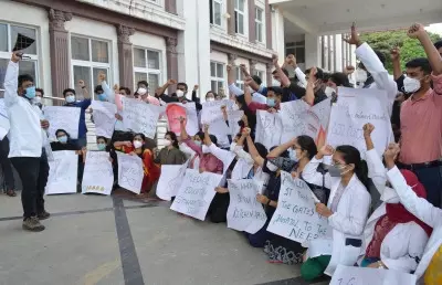Holding placards in support of their demands, junior doctors staged protests at both the major government hospitals.