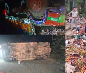 One of the injured told the police that he heard the sound of a tyre burst, and immediately afterwards, the truck overturned.