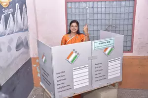 As the much-awaited E-day dawned, Navneet, 38 – sporting a dazzling golden-orange sari with small designs - decided to do something different while stepping out to vote on Friday morning.