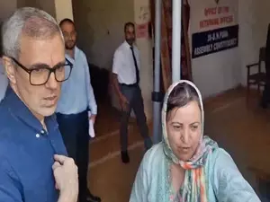 Sakina Itoo accompanied by NC vice president and former Chief Minister Omar Abdullah filed her papers as the NC candidate for the Damhal Hanjipora Assembly constituency in Kulgam district.
