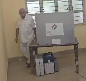 Former Chief Minister B.S. Yediyurappa along with families of his two sons, state President B.Y. Vijayendra, and Shivamogga BJP candidate B.Y. Raghavendra cast their votes at booth number 137 in Shikaripura town in Shivamogga district. Before casting their votes, the Yediyurappa family visited the Huccharaya Swamy temple and offered prayers.