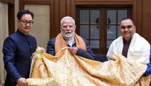 Union Minister Kiren Rijiju posted on X on Thursday, "PM Narendra Modi presented the Chadar that would be offered on his behalf at the Ajmer Sharif Dargah on the Urs of Khwaja Moinuddin Chishti."