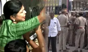 As soon as Sowmiya and her party members took to the streets, they were arrested and removed by the police.