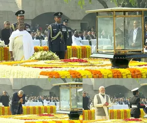 New Delhi, Jan 30 Tributes were paid to Mahatma Gandhi at the Gandhi Smriti Memorial at Rajghat on his death anniversary, honouring his immense contributions to the nation and his unwavering commitment to truth and non-violence.