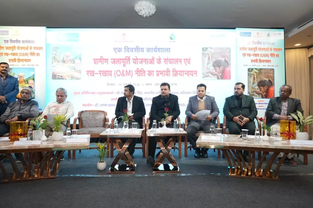 A one-day state-level workshop on the Operation and Maintenance (O&M) Policy for Water Supply Schemes was organized today at Hotel Maurya in Patna by the Public Health Engineering Department, Government of Bihar, in collaboration with Dr. Shyama Prasad Mukherjee National Institute of Water and Sanitation, Kolkata, and UNICEF Bihar. The workshop was organized to provide detailed discussions on issues related to the operation and maintenance of rural water supply schemes in the state under the "Tap Water for Every Home" scheme.