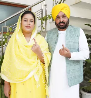 Chandigarh, June 1 Punjab Chief Minister Bhagwant Mann and his wife, Gurpreet Kaur, cast their votes on Saturday at a polling booth in the Sangrur Lok Sabha constituency, and appealed to people to vote in large numbers.