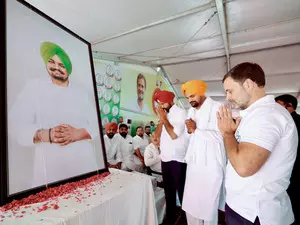 Paying tributes to the slain Punjabi singer Sidhu Moosewala whose framed image was placed on the dais on his second death anniversary, Rahul Gandhi favoured an ‘aggressive’ approach to solving the drug menace in the state. He was accompanied by Moosewala’s father Balkaur Singh Sidhu.