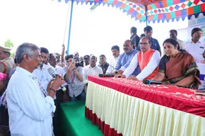 Union Minister Chouhan shook hands with the farmers and told them not to lose heart. He said the government headed by Prime Minister Narendra Modi at the Centre and the state government led by Chief Minister N. Chandrababu Naidu would help them.