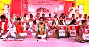 Union Minister of State for Home Bandi Sanjay Kumar, BJP OBC Morcha national president K. Laxman, MPs Eatala Rajender, D. K. Aruna and party floor leader in Telangana Assembly A. Maheshwar Reddy were among those participating in the protest.