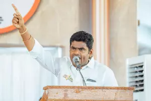 Annamalai is taking on Ganapathi P Rajkumar of the DMK and Singai G Ramachandran of the AIADMK in a three-cornered contest.