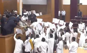 Speaker Padhy first adjourned the House till noon due to the ruckus by opposition members. However, the House was again adjourned till 4 p.m. as the pandemonium continued after the proceedings resumed.
