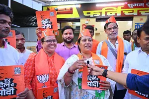 The city looked immersed in the political hue of saffron, as hundreds of people were sporting and flaunting T-shirts, with ‘Har Dil Mein Modi’ inscribed on it.