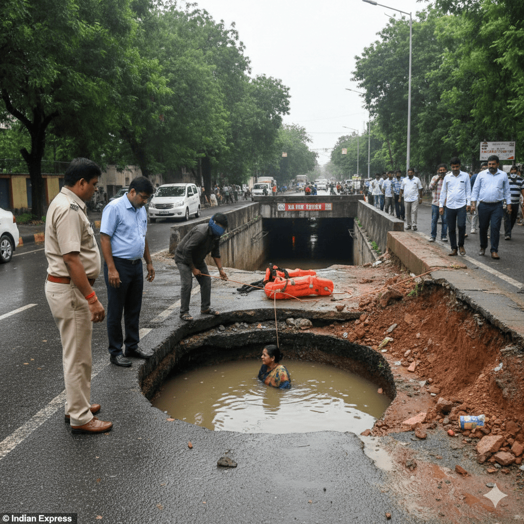 Crucially, the pit was completely concealed. The rainwater had risen to road level, creating the illusion of routine waterlogging. Neither Singh nor the victim initially realised that the road had collapsed into a deep excavation.