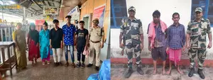 In Tripura, Border Security Force (BSF) personnel and GRP staff arrested two Bangladeshi nationals and two Indian touts from Sepahijala and West Tripura districts.