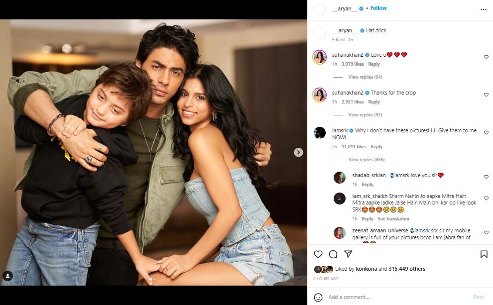 Aryan's social media post garnered more than three lakh likes and several comments within a couple of hours of being shared. Among the ones who commented was his father, SRK, who wrote, "Why I don't have these pictures!!!!!! Give them to me NOW!"