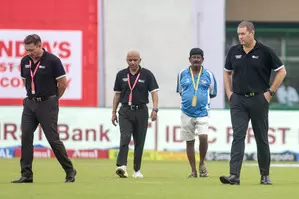 IANS understands that a certain part of the deep mid-wicket at Pavilion C is of little concern and dampness can be the issue. Crowe along with Virender Sharma (Reserve umpire) and TV Umpire Rod Tucker inspected the ground and was not satisfied with certain areas.